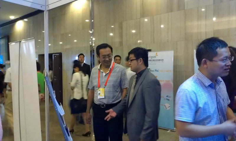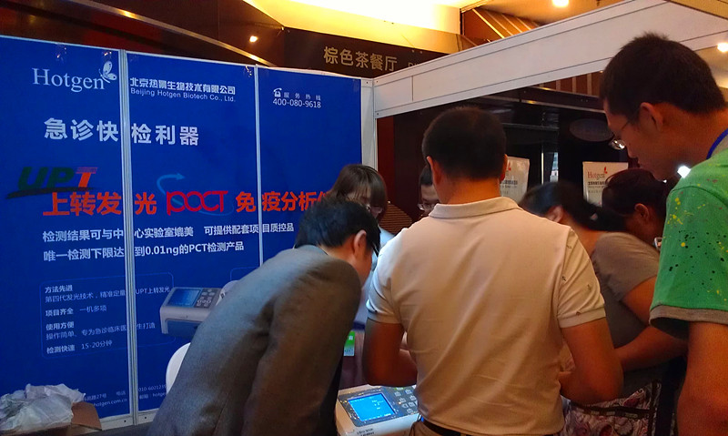 會(huì)議期間,熱景生物展示急診快檢利器——上轉(zhuǎn)發(fā)光免疫分析儀,獨(dú)特的方法,全面的產(chǎn)品,引起急診領(lǐng)域?qū)<依蠋煹母叨扰d趣,紛紛到展臺(tái)咨詢儀器的使用及產(chǎn)品的性能等,熱景生物的工作人員耐心的給參觀人員做了詳細(xì)的介紹。