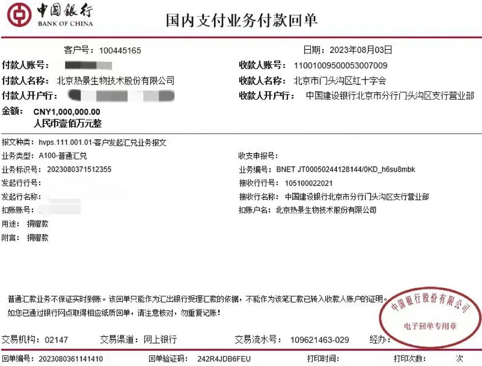 熱景生物一直密切關(guān)注著汛情救援進(jìn)展,主動(dòng)聯(lián)系相關(guān)部門(mén)提供支援幫助,并向北京市門(mén)頭溝區(qū)紅十字會(huì)捐贈(zèng)100萬(wàn)元防汛抗洪資金,助力當(dāng)?shù)卣蜕鐣?huì)力量抗擊災(zāi)情。