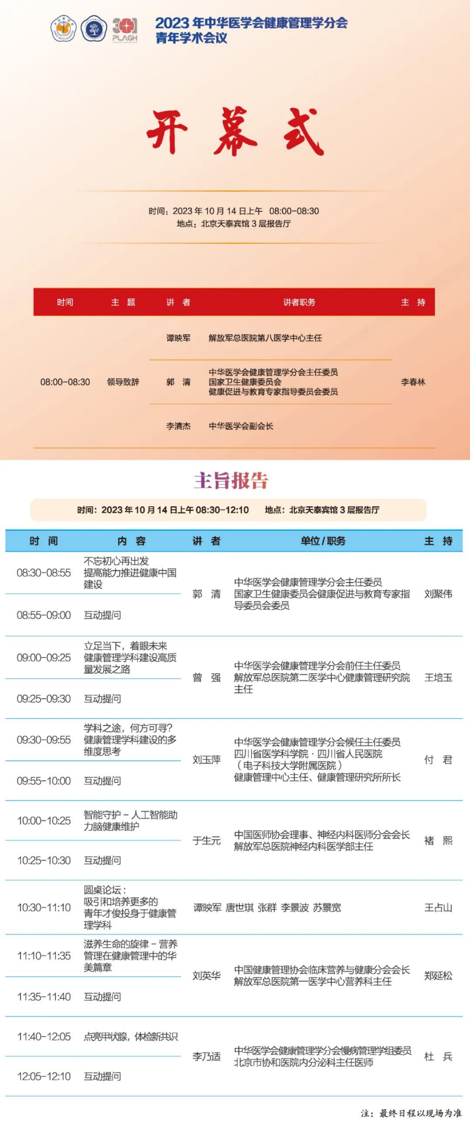大會專題報告地點:分論壇二 ? 健康管理學科建設論壇(三層報告廳B)