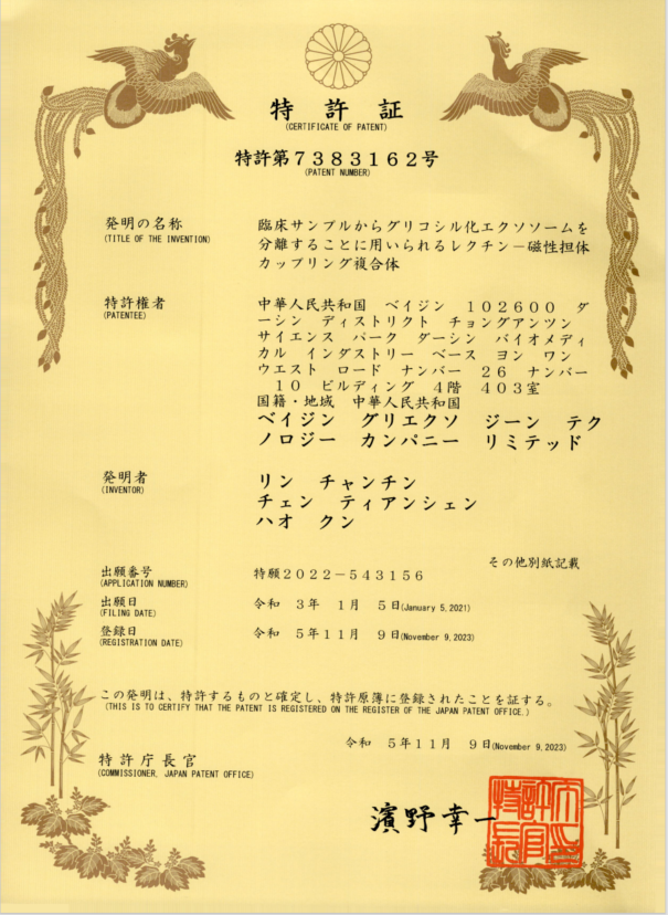 近日,熱景生物自主研發(fā)的糖鏈外泌體技術(shù)GIyExo一Capture平臺通過PCT途徑獲得日本發(fā)明專利授權(quán),標志著糖基化外泌體進入國際臨床診斷領(lǐng)域又邁出了具有里程碑意義的重要一步。