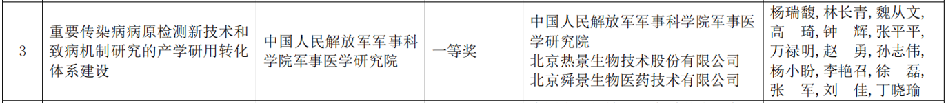近日,北京市人民政府發(fā)布《北京市人民政府關(guān)于2023年度北京市科學(xué)技術(shù)獎(jiǎng)勵(lì)的決定》,中國(guó)人民解放軍軍事科學(xué)院軍事醫(yī)學(xué)研究院、北京熱景生物技術(shù)股份有限公司、北京舜景生物醫(yī)藥技術(shù)有限公司聯(lián)合申報(bào)的“重要傳染病病原檢測(cè)新技術(shù)和致病機(jī)制研究的產(chǎn)學(xué)研用轉(zhuǎn)化體系建設(shè)”項(xiàng)目,榮獲“2023年北京市科學(xué)技術(shù)進(jìn)步獎(jiǎng)一等獎(jiǎng)”,這是繼公司獲得國(guó)家技術(shù)發(fā)明二等獎(jiǎng)、中華醫(yī)學(xué)科技獎(jiǎng)二等獎(jiǎng)、民營(yíng)科技發(fā)展貢獻(xiàn)獎(jiǎng)科技創(chuàng)新一等獎(jiǎng)、上海市科學(xué)技術(shù)二等獎(jiǎng)之后的又一重磅獎(jiǎng)項(xiàng),充分體現(xiàn)了熱景生物在高水平科技自立自強(qiáng)、打造科技創(chuàng)新核心競(jìng)爭(zhēng)力道路上的不懈追求和綜合實(shí)力。