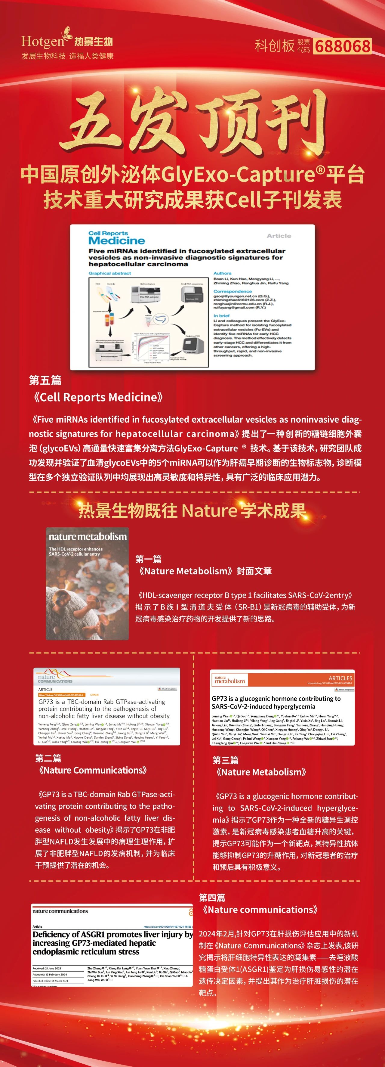 GIyExo-Capture?平臺是中國IVD科研創(chuàng)新創(chuàng)造的一個典范,針對全球范圍內(nèi)外泌體液體活檢應(yīng)用準(zhǔn)確率不高,操作繁瑣等臨床應(yīng)用挑戰(zhàn),提供了創(chuàng)新的解決方案。該平臺采用糖捕獲技術(shù),實現(xiàn)疾病相關(guān)外泌體全自動、快速高通量分離,以及外泌體運載microRNA的高靈敏度檢測。目前,熱景生物具有自主專利GIyExo-Capture?平臺開發(fā)的系列癌癥早期診斷成果陸續(xù)通過注冊檢驗(胰腺癌、肝癌、胃癌等),相關(guān)神經(jīng)退行性疾病研發(fā)項目進展順利。作為糖捕獲診斷方法學(xué)的提出者,熱景生物致力于將中國企業(yè)的原創(chuàng)性技術(shù)推廣應(yīng)用到全球臨床,為全球患者帶來更精準(zhǔn)、更便捷的診斷方案、使更多患者獲益于中國創(chuàng)新技術(shù)。