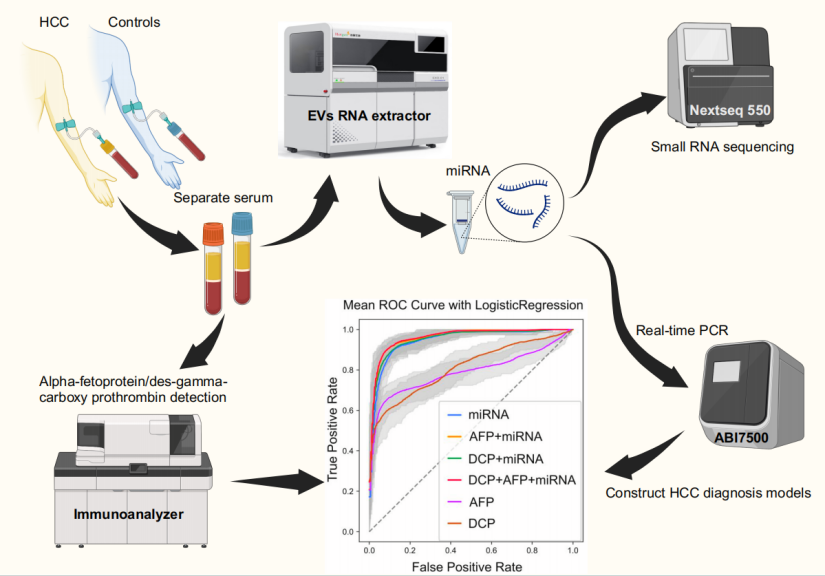 綜上所述,基于miRNA和AFP特征的HCC分類模型實現(xiàn)了精準(zhǔn)診斷,標(biāo)志著肝癌早期篩查領(lǐng)域的重大突破。肝癌外泌體miRNA產(chǎn)品以其高度準(zhǔn)確性和非侵入性,為臨床診斷帶來了新的希望,助力全球肝癌患者獲得更精準(zhǔn)的治療。這一研究成果不僅推動了肝癌研究與臨床實踐的進展,也為實現(xiàn)更有效的早期篩查和治療方案奠定了堅實基礎(chǔ)。