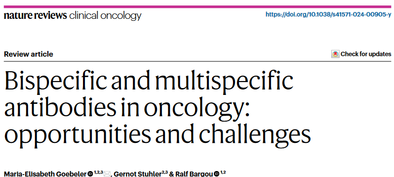 IF:78.8!Nature系列綜述: 面向腫瘤的雙特異性和多特異性抗體—機(jī)遇與挑戰(zhàn)