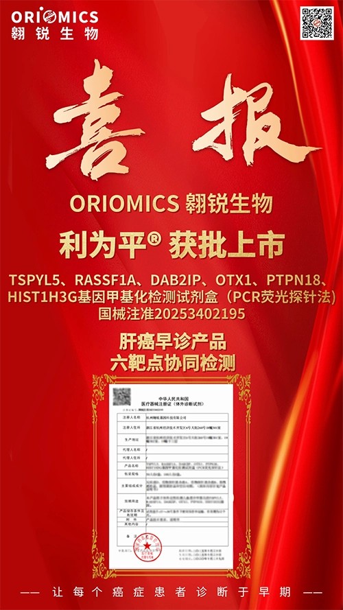 近日,熱景生物重要參股公司翱銳生物自主研發(fā)的利為平?——TSPYL5、RASSF1A、DAB2IP、OTX1、PTPN18、HIST1H3G基因肝癌甲基化檢測(cè)試劑盒(PCR熒光探針?lè)ǎ┇@得國(guó)家藥品監(jiān)督管理局頒發(fā)的Ⅲ類(lèi)醫(yī)療器械注冊(cè)證(注冊(cè)證號(hào):國(guó)械注準(zhǔn)20253402195)。該產(chǎn)品用于體外定性檢測(cè)人血漿中相關(guān)基因甲基化,適用于臨床上對(duì)疑似原發(fā)性肝癌的輔助診斷。