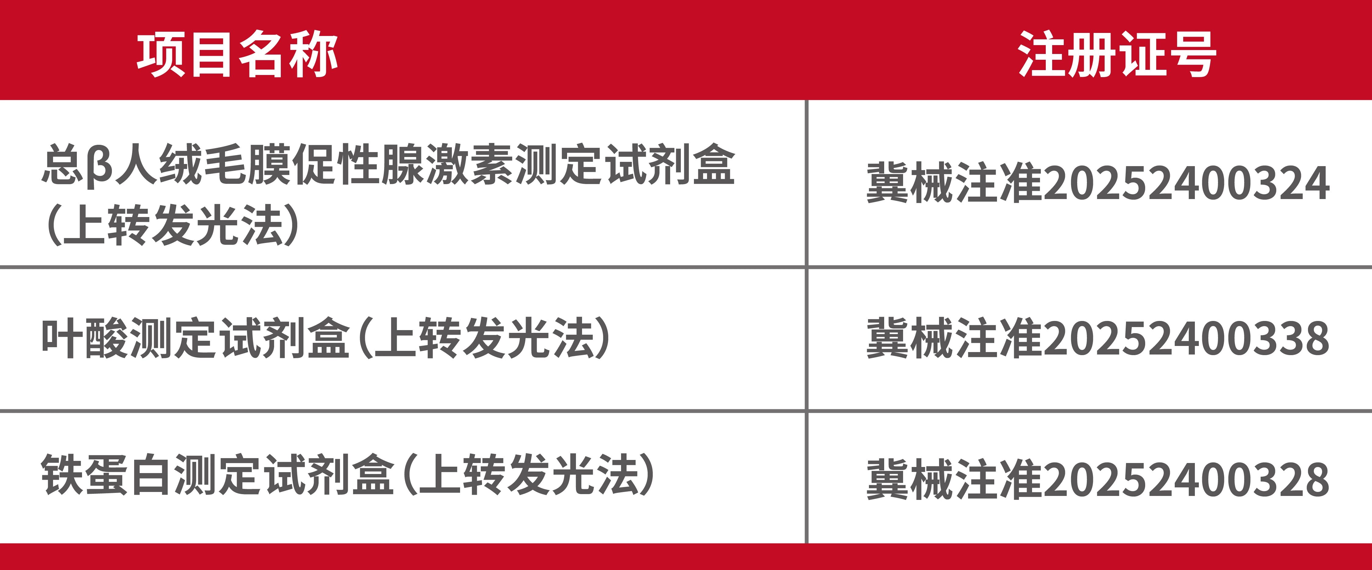 近日,熱景生物憑借卓越的研發(fā)實(shí)力與技術(shù)創(chuàng)新,再獲得三項(xiàng)醫(yī)療器械注冊(cè)證。此次獲批的總β人絨毛膜促性腺激素測(cè)定試劑盒(上轉(zhuǎn)發(fā)光法)、葉酸測(cè)定試劑盒(上轉(zhuǎn)發(fā)光法)及鐵蛋白測(cè)定試劑盒(上轉(zhuǎn)發(fā)光法),標(biāo)志著公司在婦產(chǎn)健康、營(yíng)養(yǎng)監(jiān)測(cè)及貧血管理領(lǐng)域邁出關(guān)鍵一步,為臨床診療提供更精準(zhǔn)、高效的檢測(cè)解決方案。